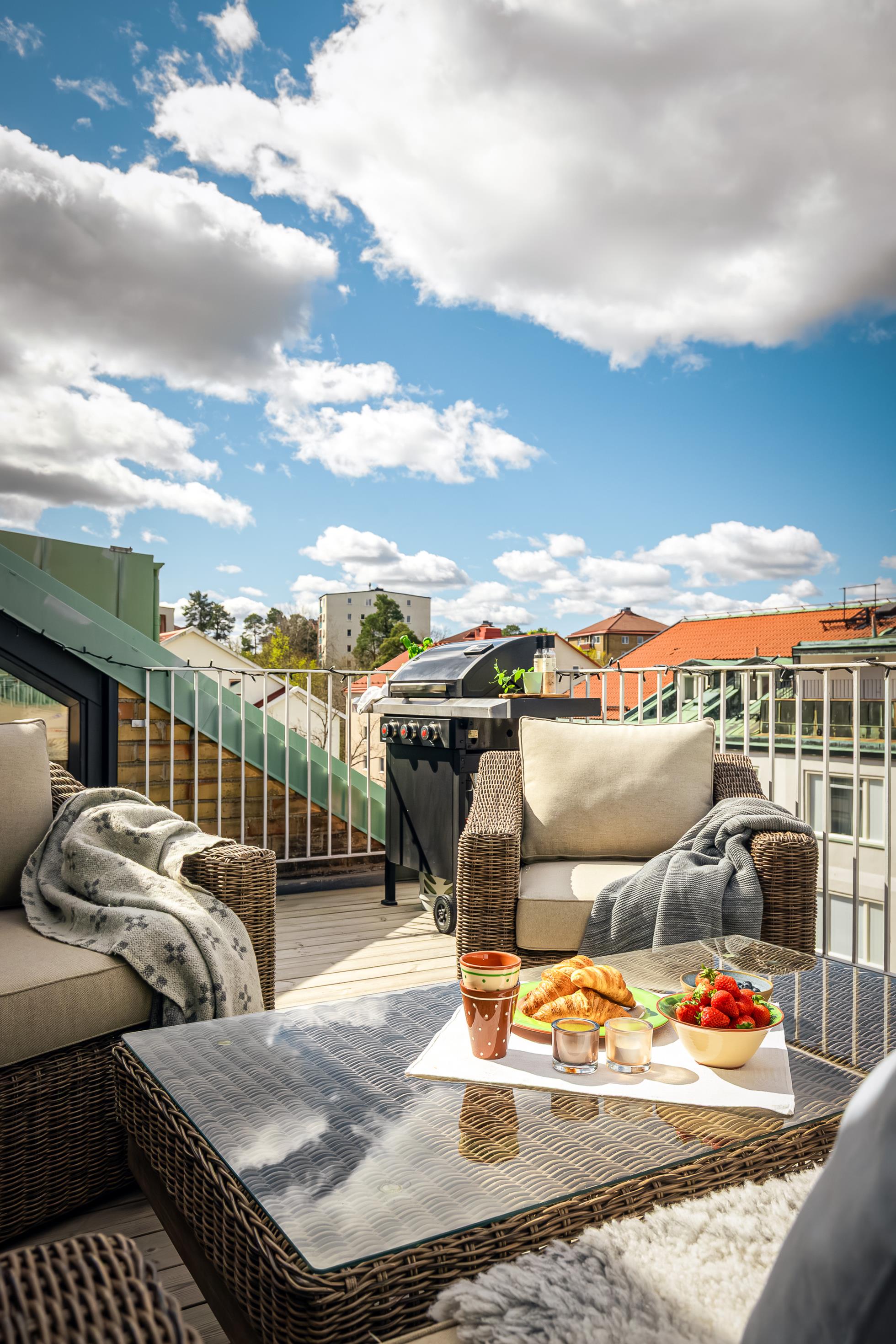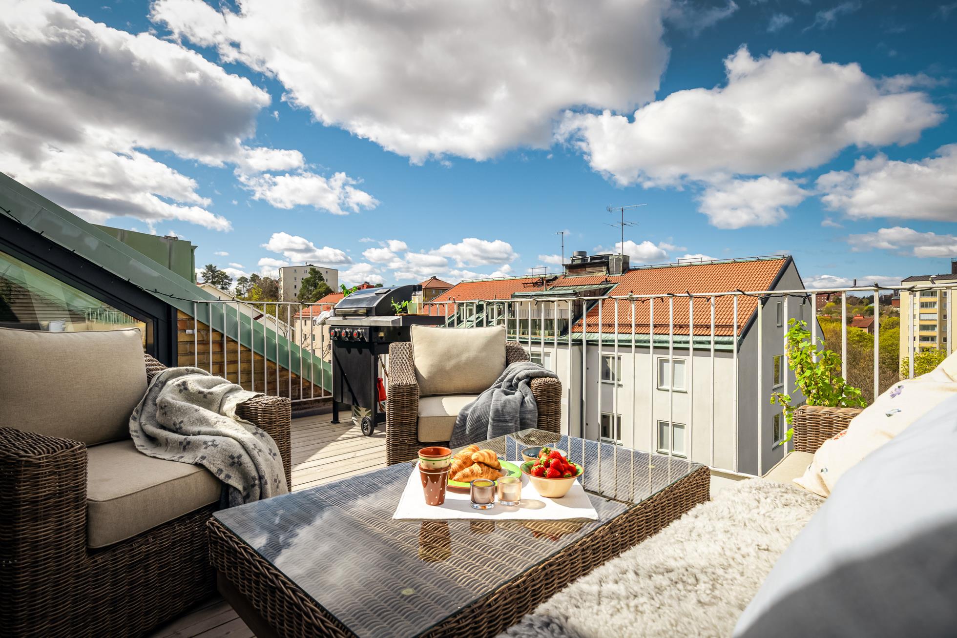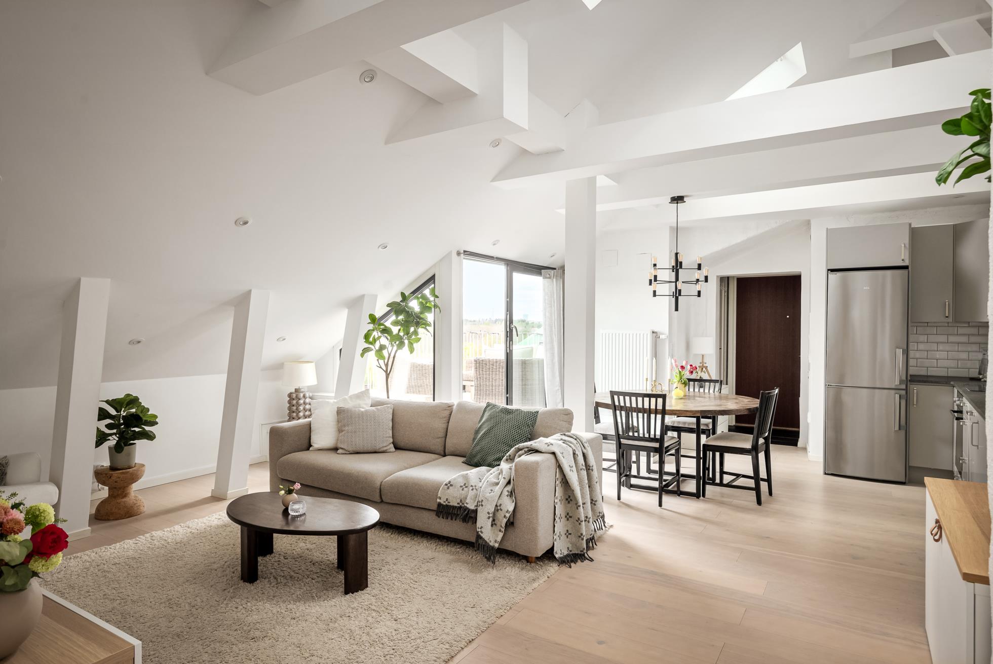 Unikt tillfälle att förvärva denna genomgående drömvind, en 3:a med stor terrass i bästa sydvästläge och med sol från förmiddag tills att solen går ner, samt en härlig vy ut över himmel och vatten. Väldisponerad golvyta på 86 kvm med en trevlig sällskapsyta och skjutdörrar ut mot stor terrass om ca 15kvm som ger intrycket av en ännu större lägenhet. Generös takhöjd med öppet hela vägen upp till taknock. Stora fönster mot terrassen i sydväst och takfönster ger fantastiskt ljusinsläpp. Spatiöst vardagsrum i social lösning, med plats för stora sällskap, mot terrassen och det exklusiva köket från ballingslöv. Master bedroom har platsbyggd förvaring, plats för dubbelsäng och annan inredning. Sovrum 2 är även det rymligt och kan disponeras som sovrum, gästrum, kontor eller en kombination. Därtill ett badrum med himmelsk med dusch, stort handfat och tvättmaskin/torktumlare samt en mycket välkomnande hall med tillhörande gäst-wc. Här bor ni i en välskött förening på ett av Solnas bästa lägen. Denna underbara vindsvåning måste upplevas på plats! Detta är verkligen ett boende för dig som söker något utöver det vanliga.