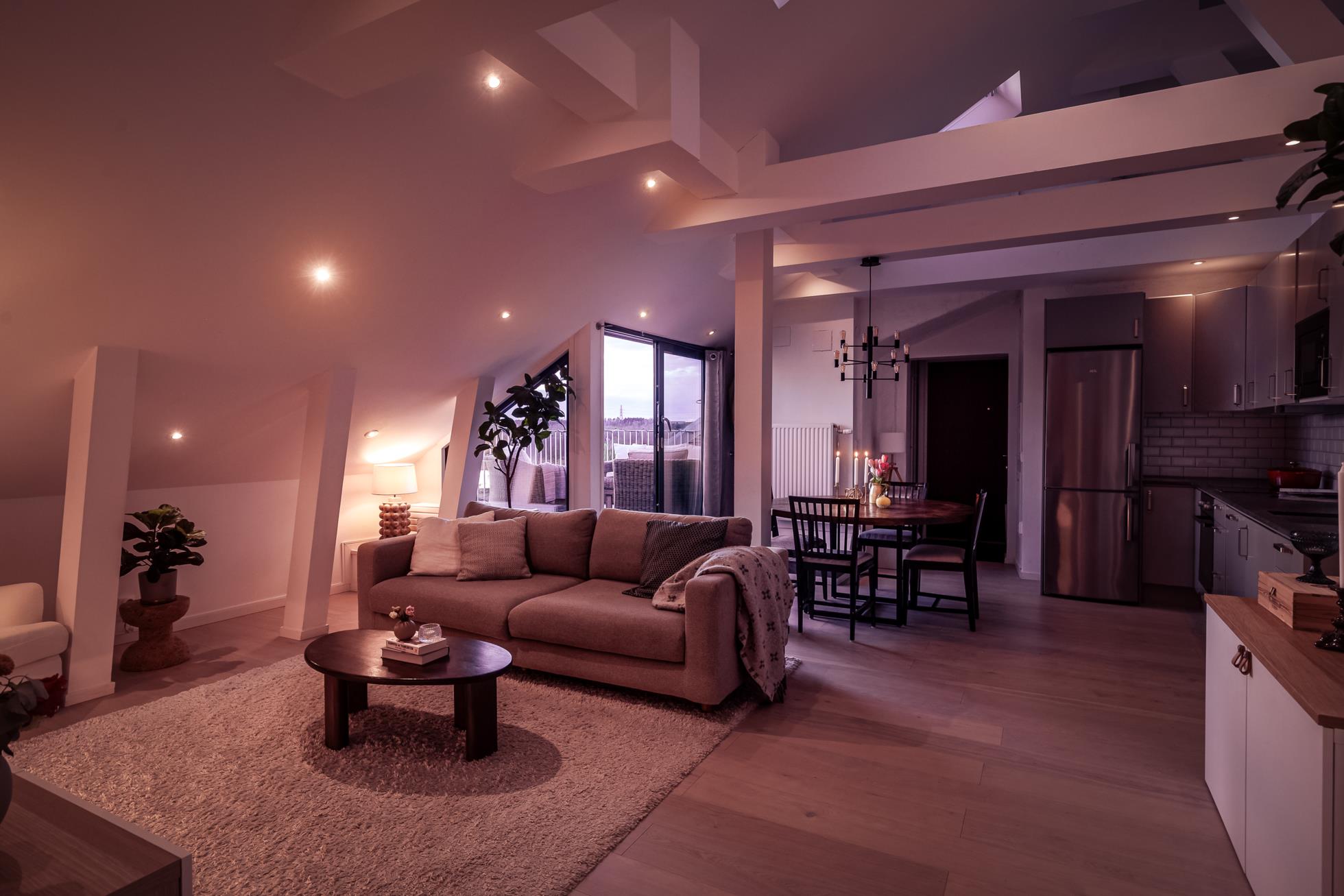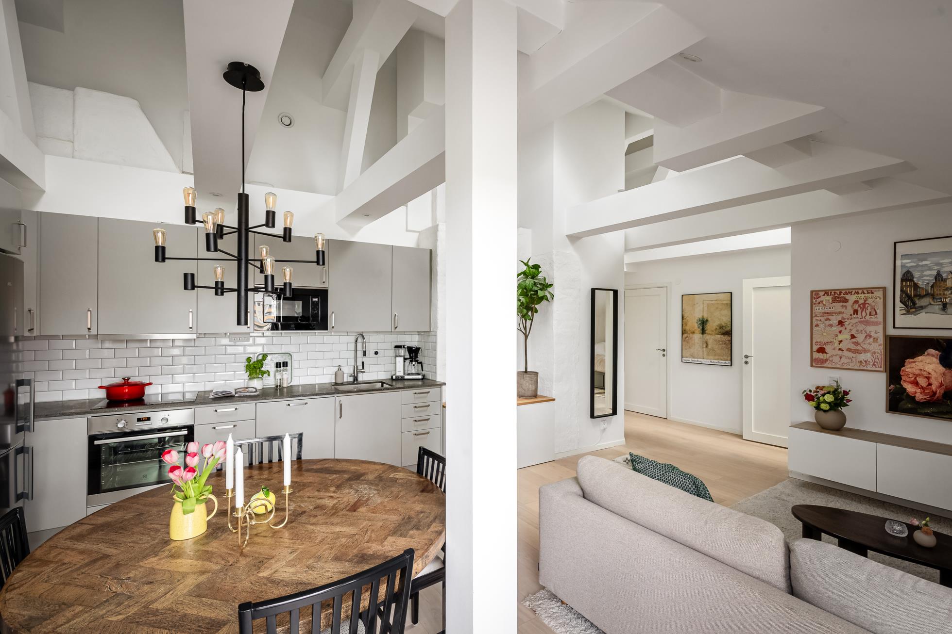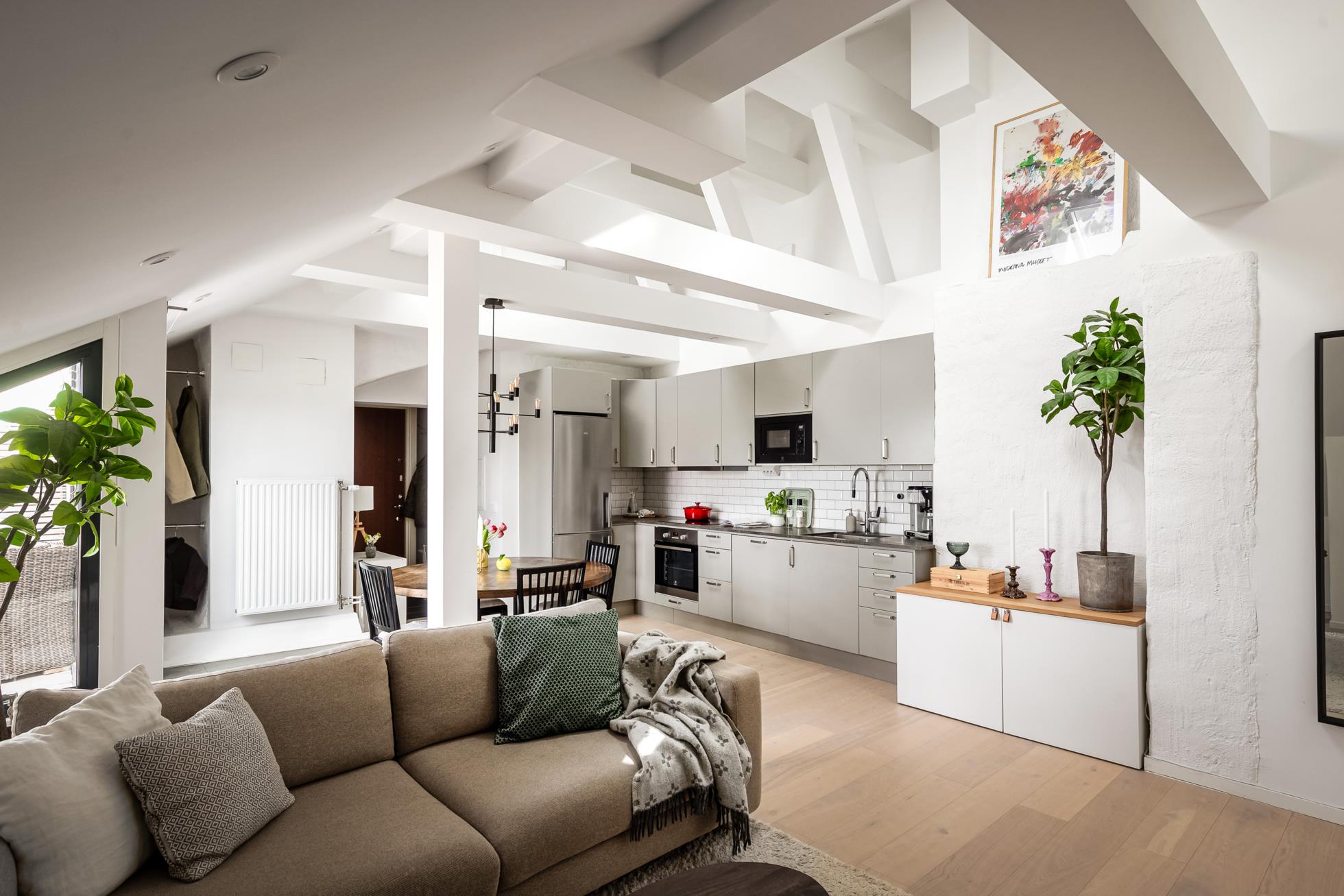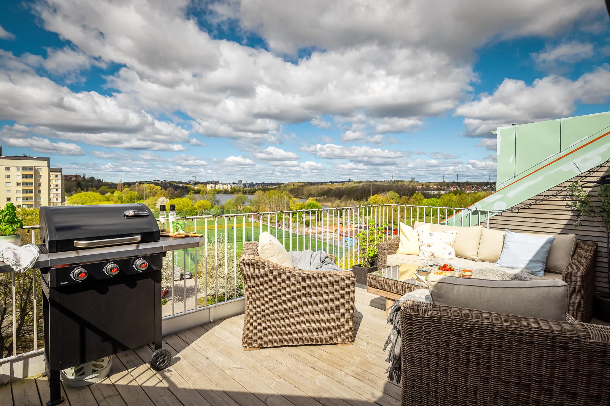 Unikt tillfälle att förvärva denna genomgående drömvind, en 3:a med stor terrass i bästa sydvästläge och med sol från förmiddag tills att solen går ner, samt en härlig vy ut över himmel och vatten. Väldisponerad golvyta på 86 kvm med en trevlig sällskapsyta och skjutdörrar ut mot stor terrass om ca 15kvm som ger intrycket av en ännu större lägenhet. Generös takhöjd med öppet hela vägen upp till taknock. Stora fönster mot terrassen i sydväst och takfönster ger fantastiskt ljusinsläpp. Spatiöst vardagsrum i social lösning, med plats för stora sällskap, mot terrassen och det exklusiva köket från ballingslöv. Master bedroom har platsbyggd förvaring, plats för dubbelsäng och annan inredning. Sovrum 2 är även det rymligt och kan disponeras som sovrum, gästrum, kontor eller en kombination. Därtill ett badrum med himmelsk med dusch, stort handfat och tvättmaskin/torktumlare samt en mycket välkomnande hall med tillhörande gäst-wc. Här bor ni i en välskött förening på ett av Solnas bästa lägen. Denna underbara vindsvåning måste upplevas på plats! Detta är verkligen ett boende för dig som söker något utöver det vanliga.