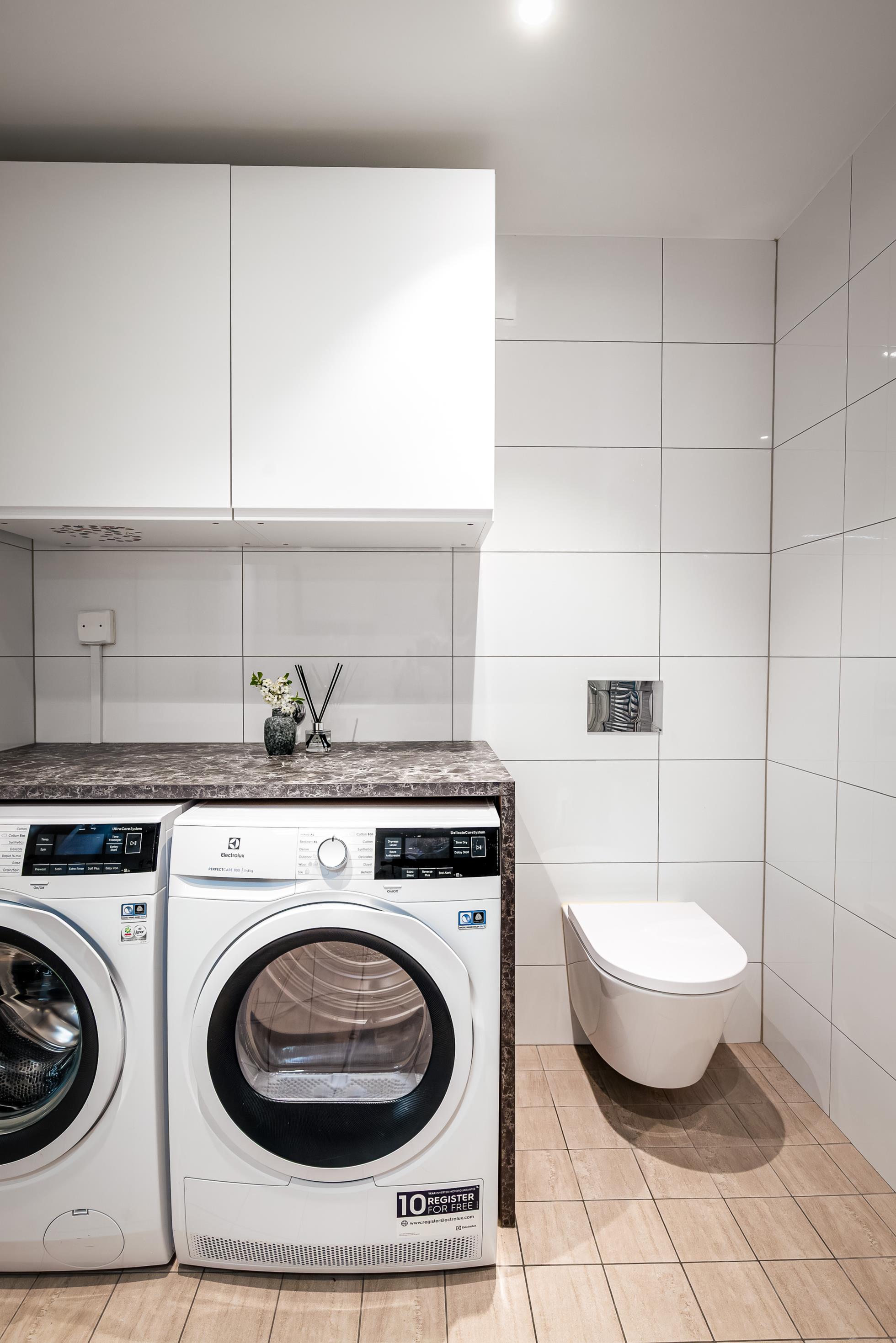 • Nybyggd tvättstuga (2 tvättmaskiner, 1 torktumlare, 1 torkskåp och 1 mangel)