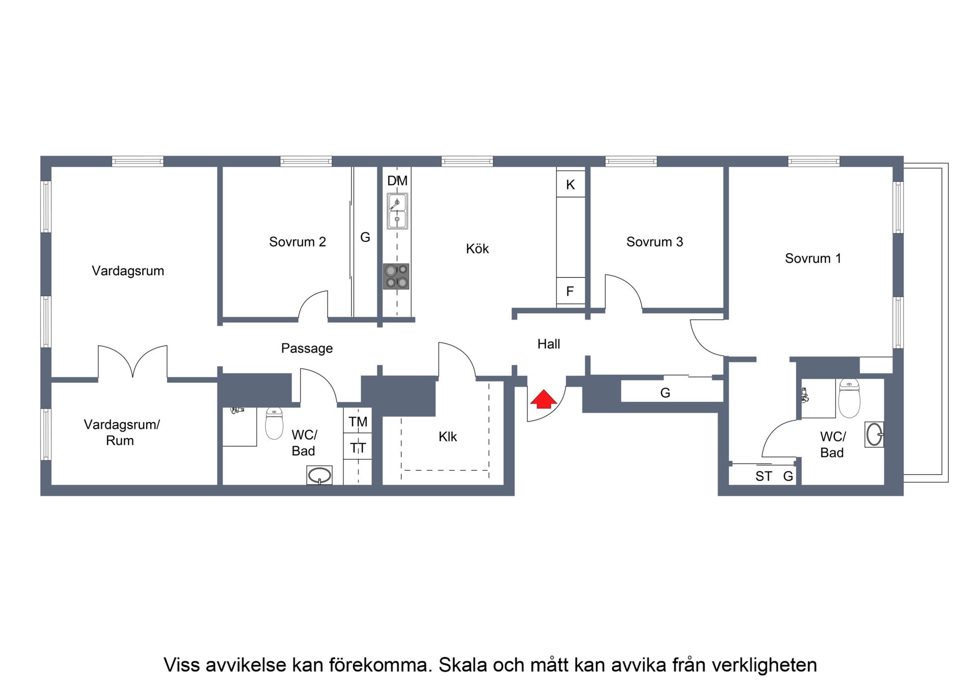Våningen bjuder på en halvöppen planlösning mellan kök och vardagsrum vilket skapar en härlig social karaktär, fyra stora rogivande sovrum med tillhörande förvaring samt en väl tilltagen balkong (4,5m lång). Med två balkongdörrar från både vardagsrummet samt sovrummet.