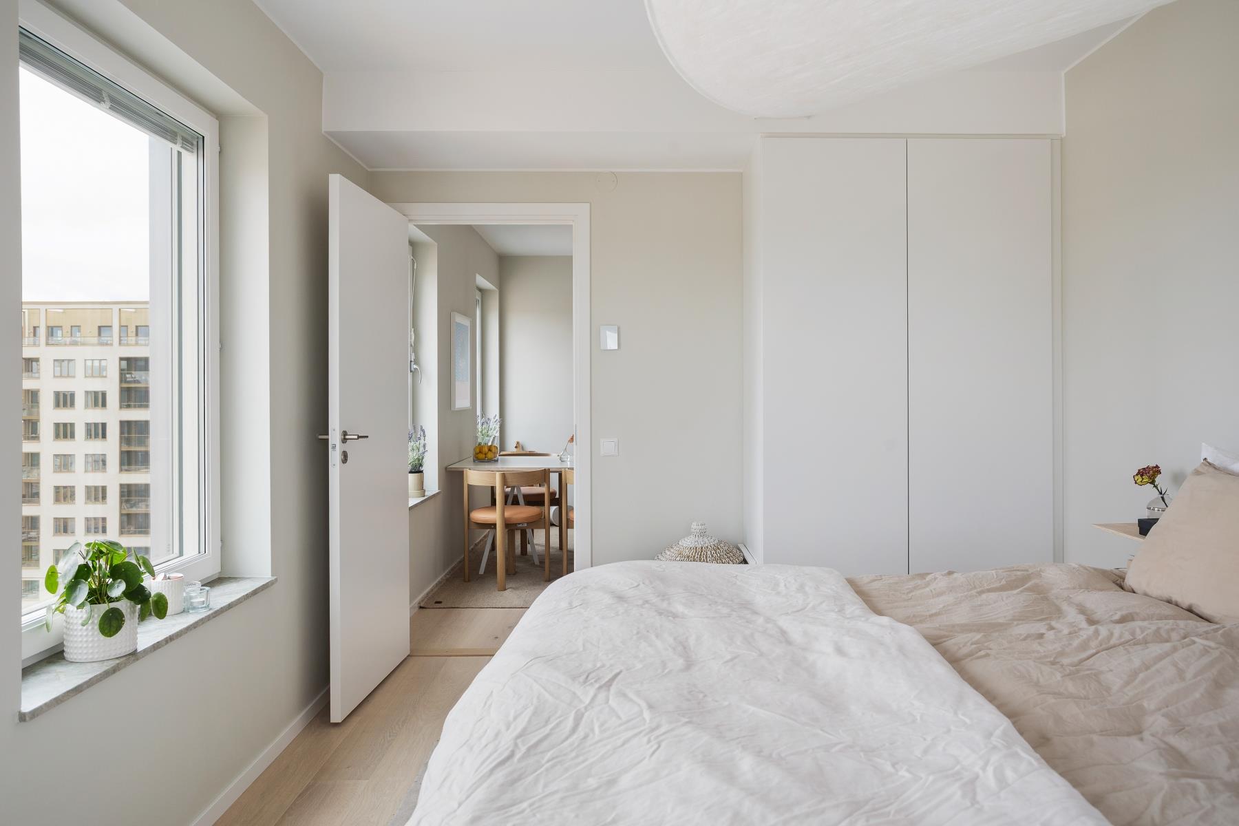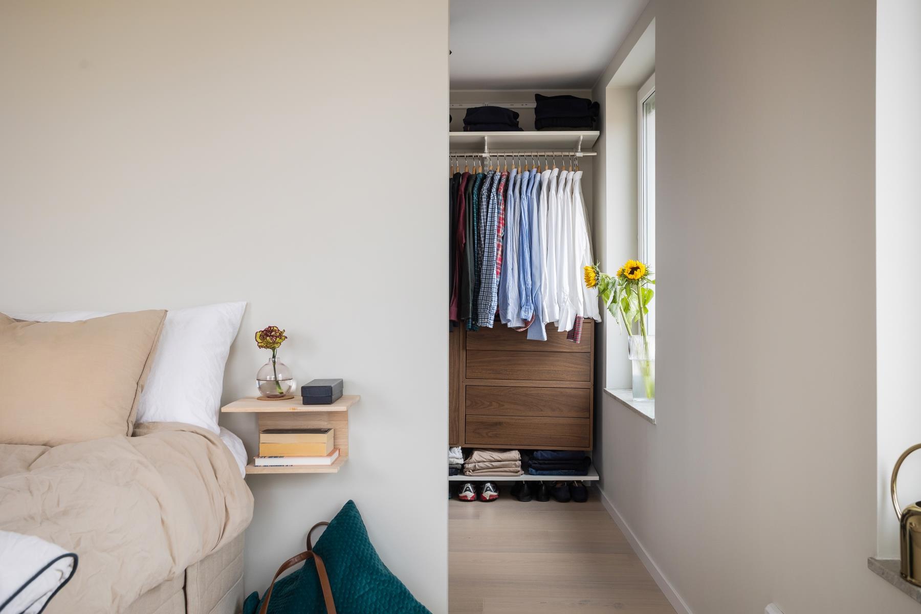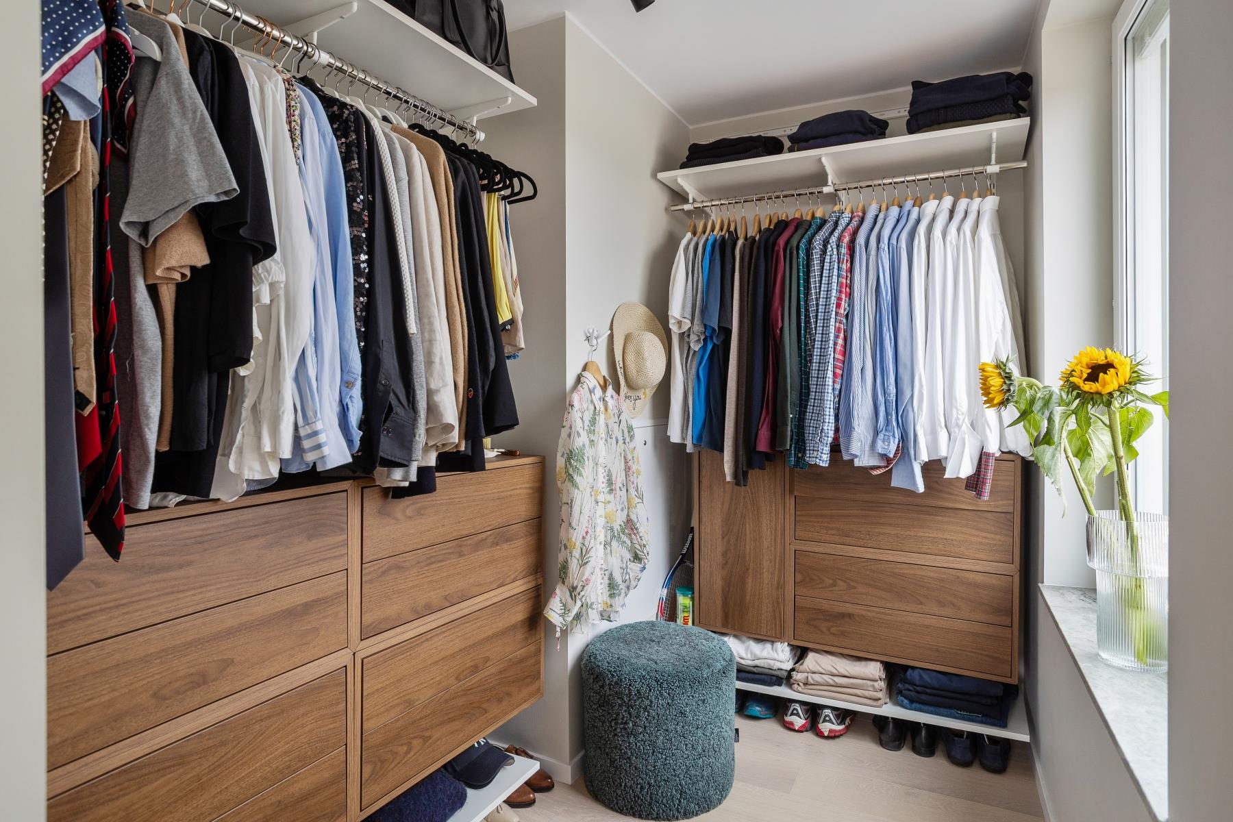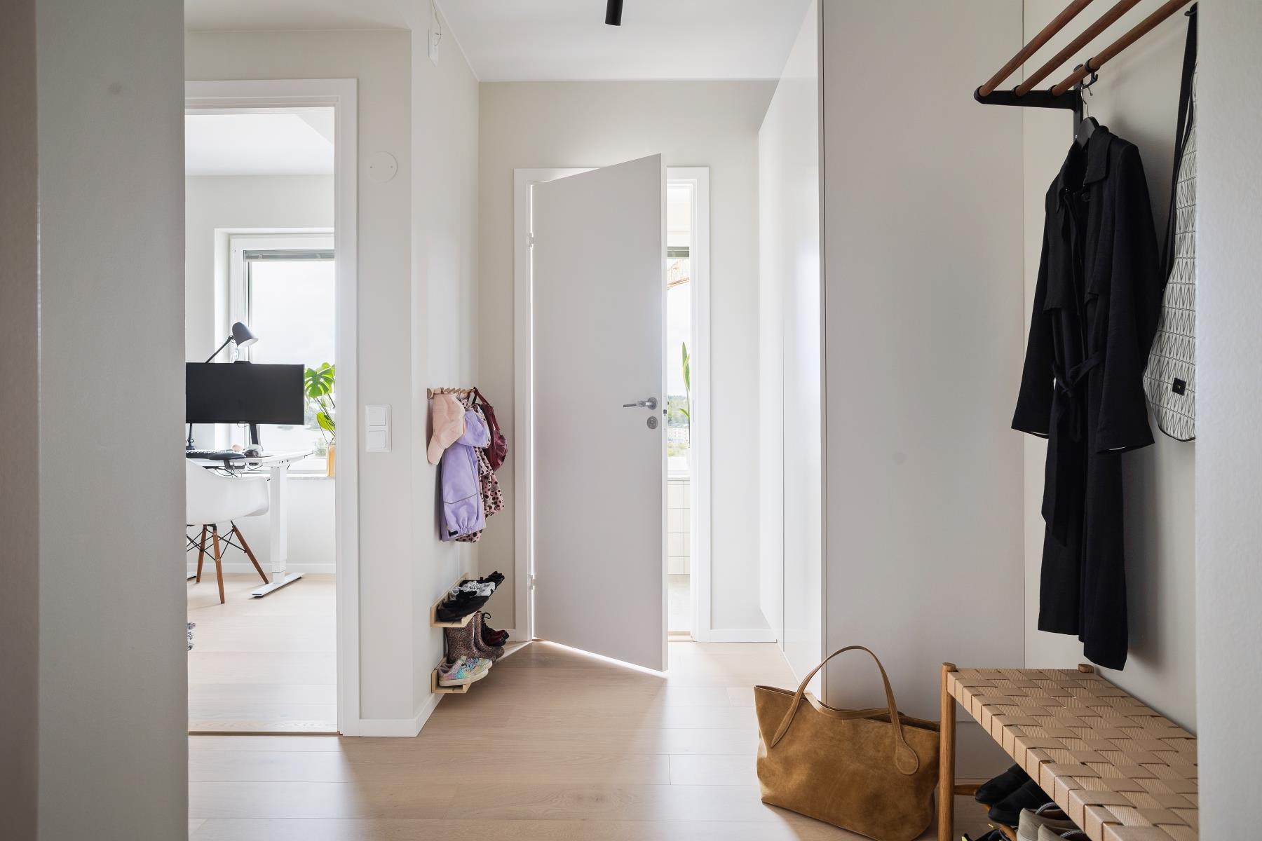 Bostaden erbjuder tre välplanerade sovrum, där master bedroom har ett hörnläge med fönster i två väderstreck, vilket ger en härlig rymd. Här finns även en praktisk klädkammare som tack vare sitt fönster också kan användas som hemmakontor.