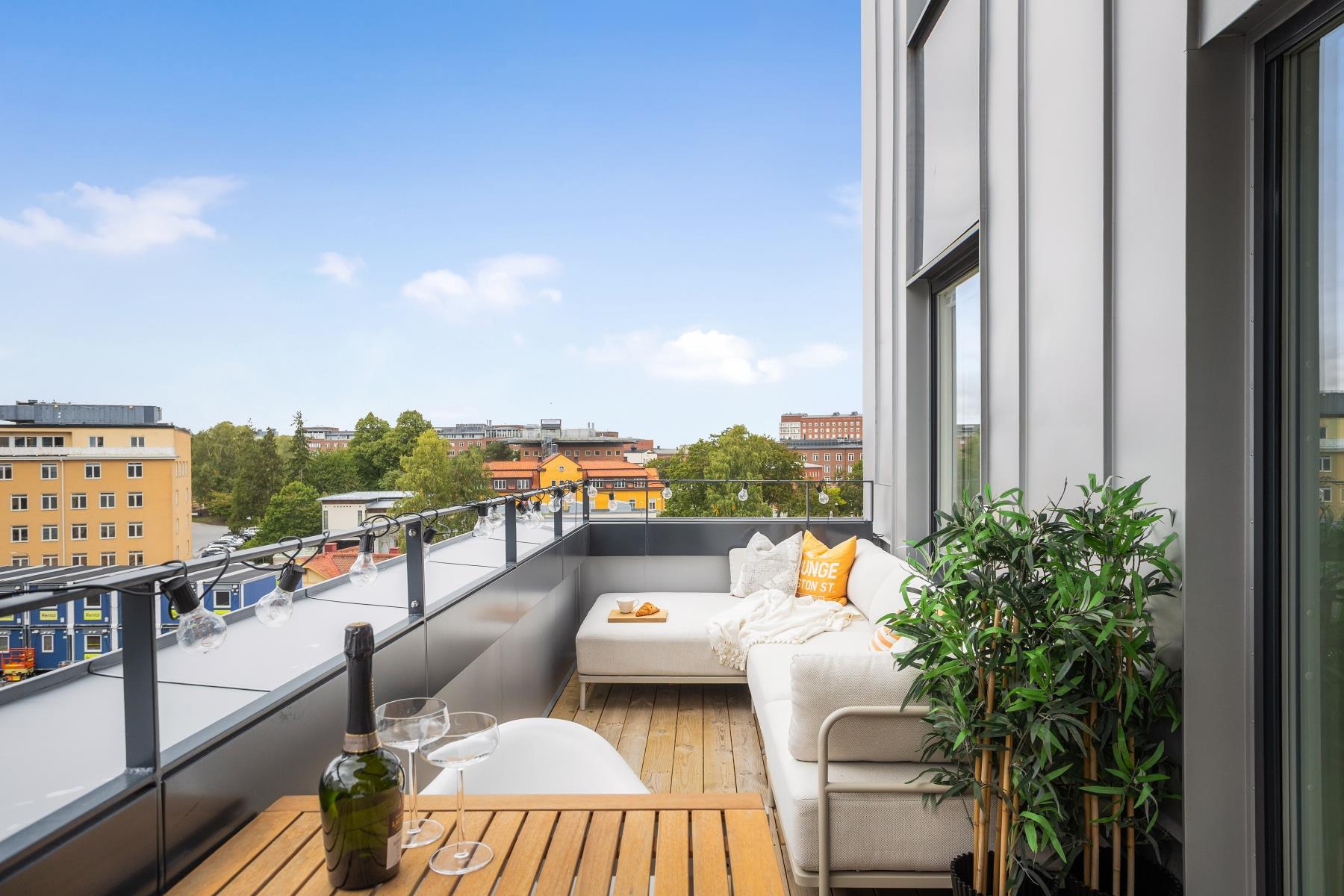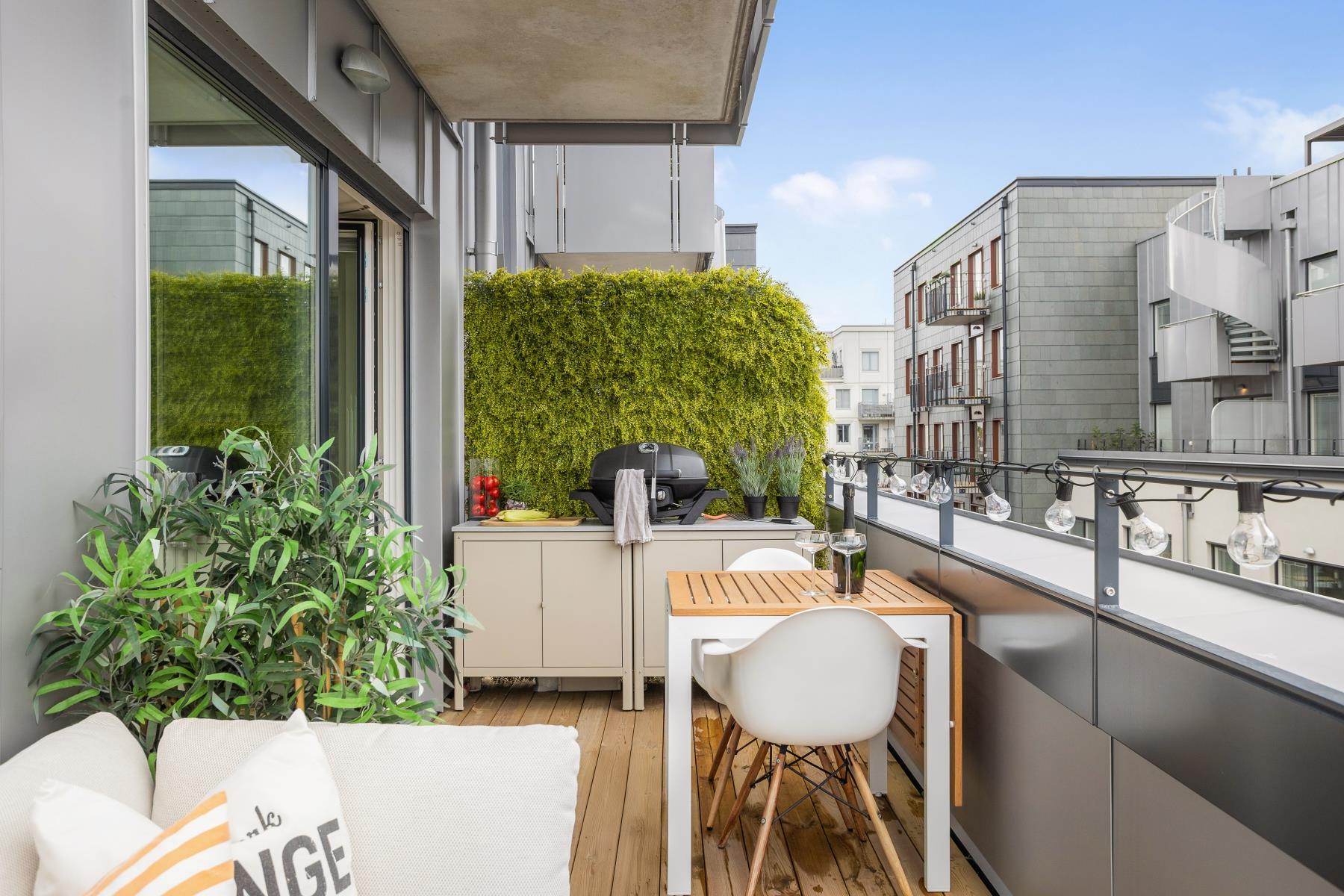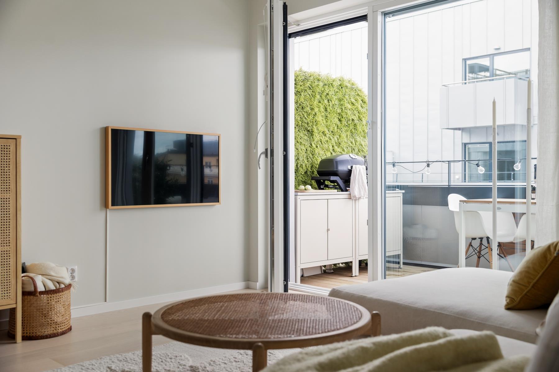 I detta populära kvarter finns nu möjlighet att förvärva en ljus och välplanerad fyrarummare med egen terrass i bästa västerläge – ett hem som verkligen skiljer sig från mängden. Den generösa terrassen fungerar som en naturlig förlängning av bostaden och ger plats för både sittgrupp, matbord, solstol samt en grillhörna med gasolgrill. Här kan du njuta av soliga eftermiddagar och långa sommarkvällar i en privat och trivsam miljö.