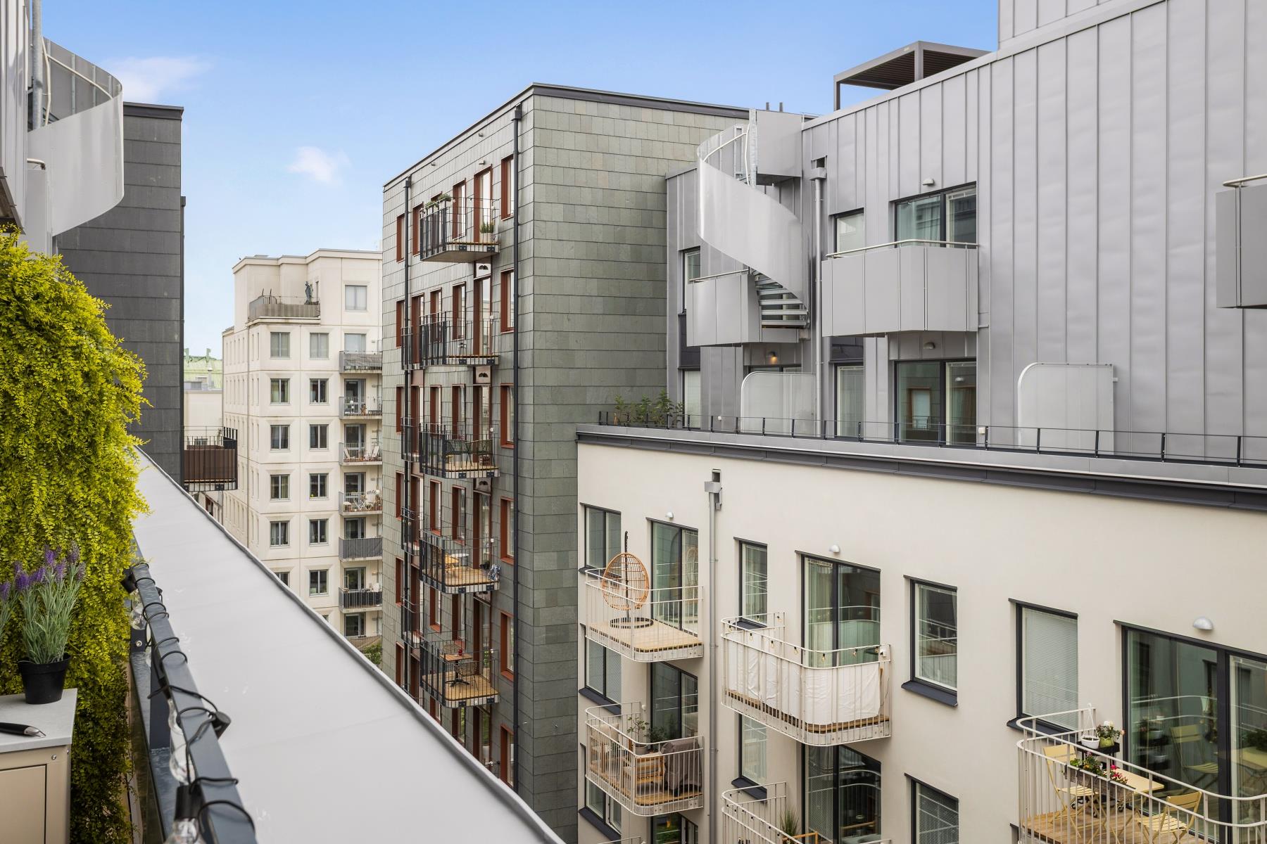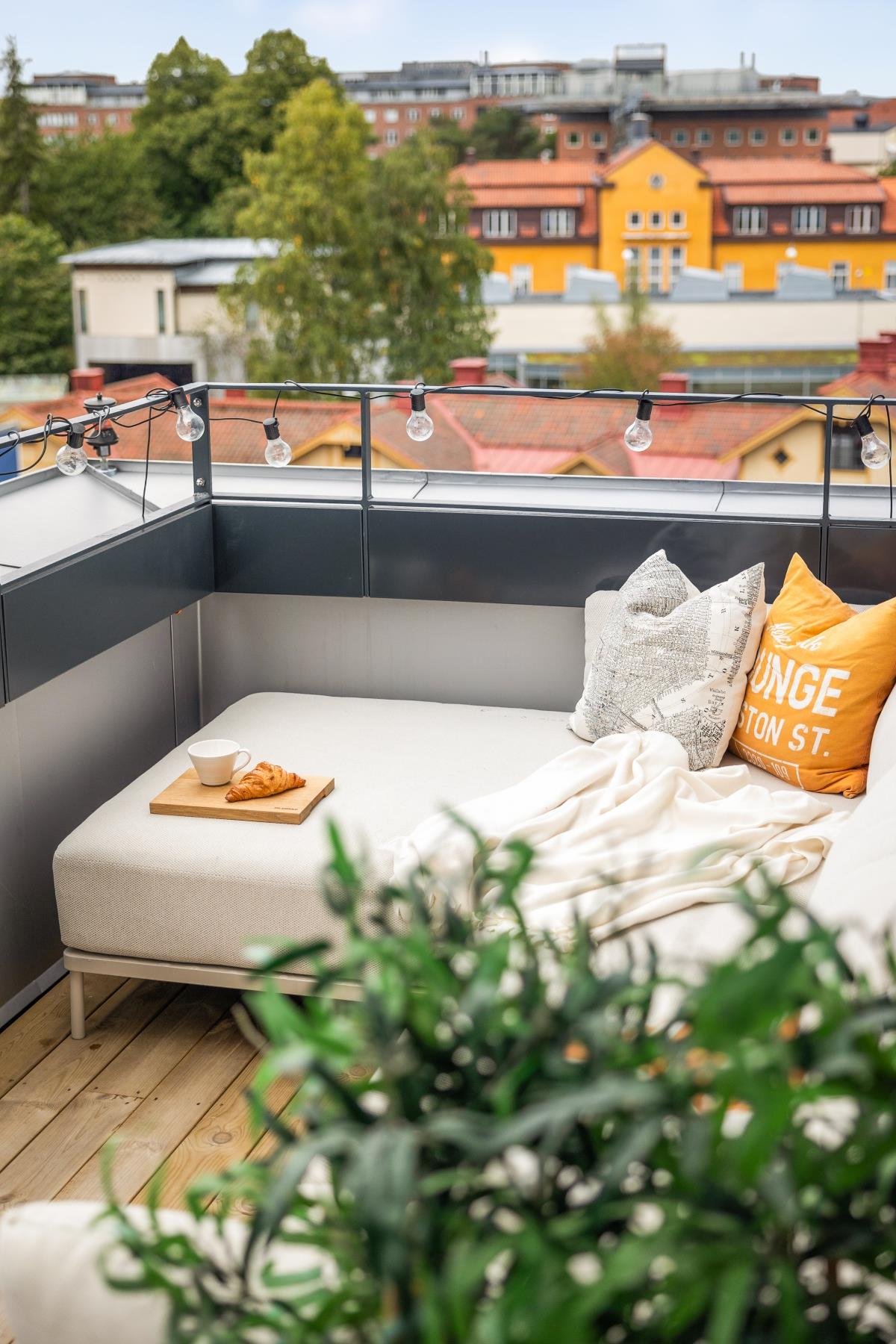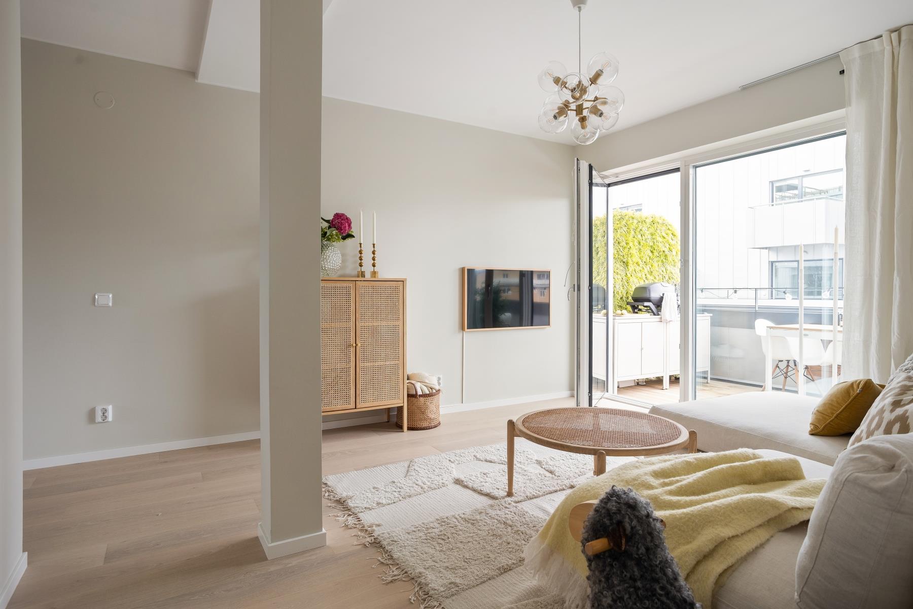 I detta populära kvarter finns nu möjlighet att förvärva en ljus och välplanerad fyrarummare med egen terrass i bästa västerläge – ett hem som verkligen skiljer sig från mängden. Den generösa terrassen fungerar som en naturlig förlängning av bostaden och ger plats för både sittgrupp, matbord, solstol samt en grillhörna med gasolgrill. Här kan du njuta av soliga eftermiddagar och långa sommarkvällar i en privat och trivsam miljö.