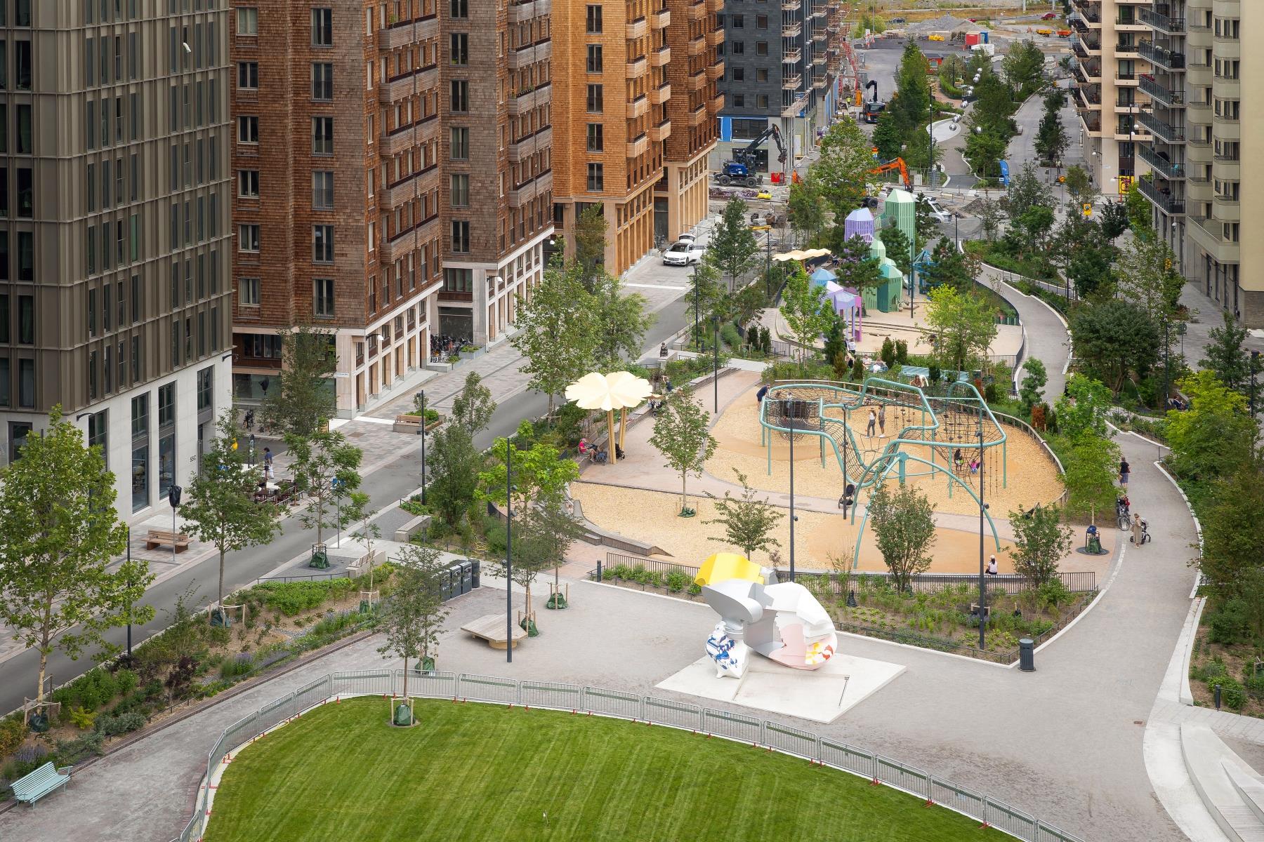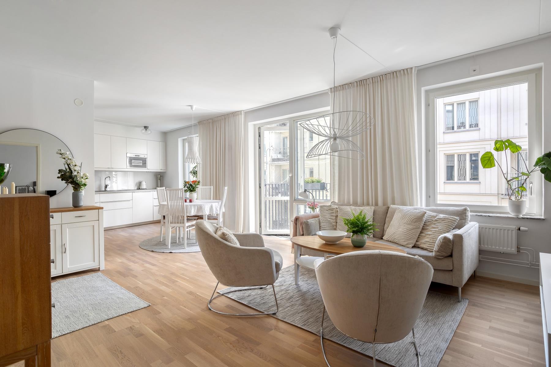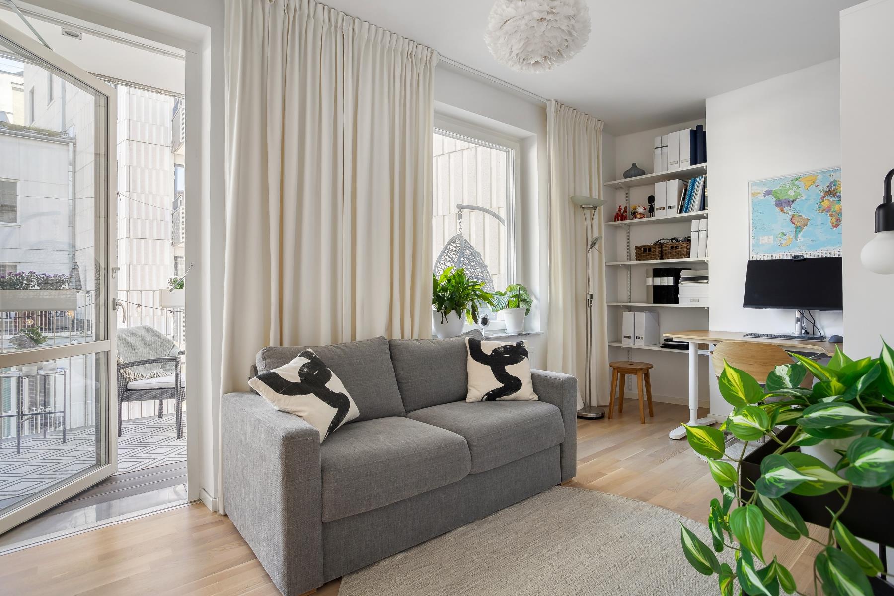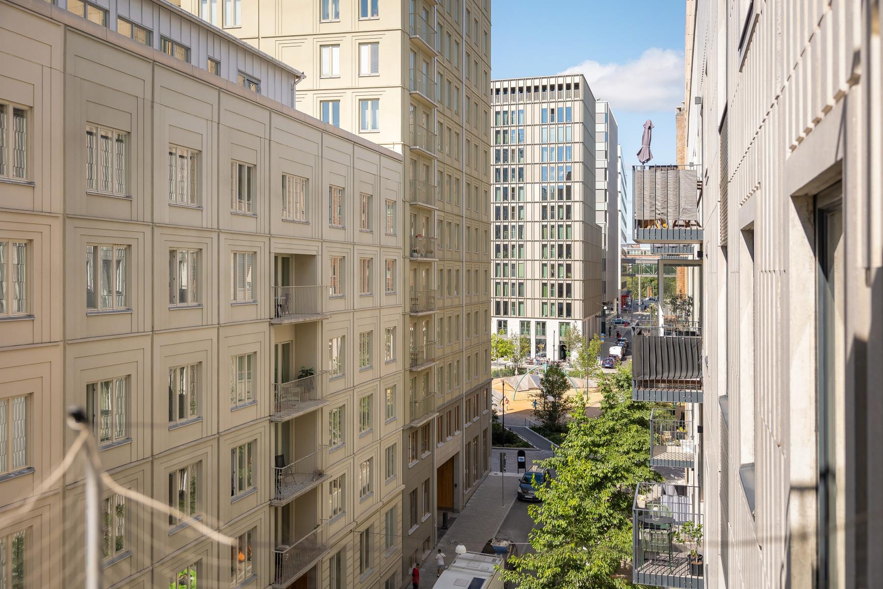 Lägenheten är belägen på en lugn gata med all typ av service runt hörnet såsom flera förskolor, skolor, livsmedelsaffärer, gym och vårdcentral. Det finns mysiga cafeér, populära restauranger och exklusiva takbarer på bara några minuters gångavstånd. Som en kontrast till gatulivet finns i andra änden av kvarteret Norra Stationsparken. Den nya, halvkilometer långa parken kommer erbjuda grönska, promenadstråk, bersåer och vattenspeglar alldeles inpå knuten. Den blir också en grön passage hela vägen till Vasastadsbornas klassiska gröna lugna Hagaparken. Dessutom går det snabbt och lätt att ta sig från Hagastaden till Karlberg, där det finns både slottspark och strandpromenad.