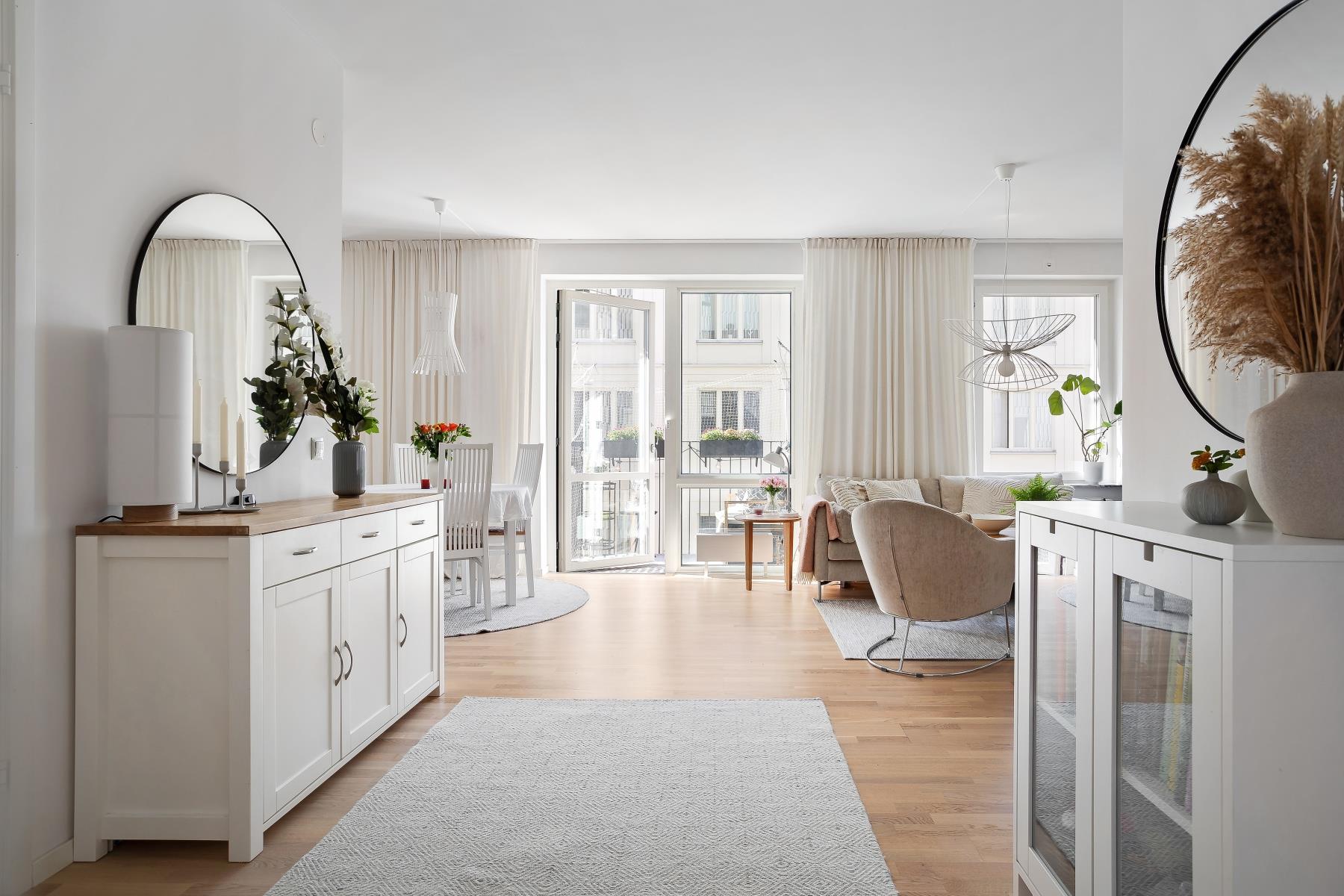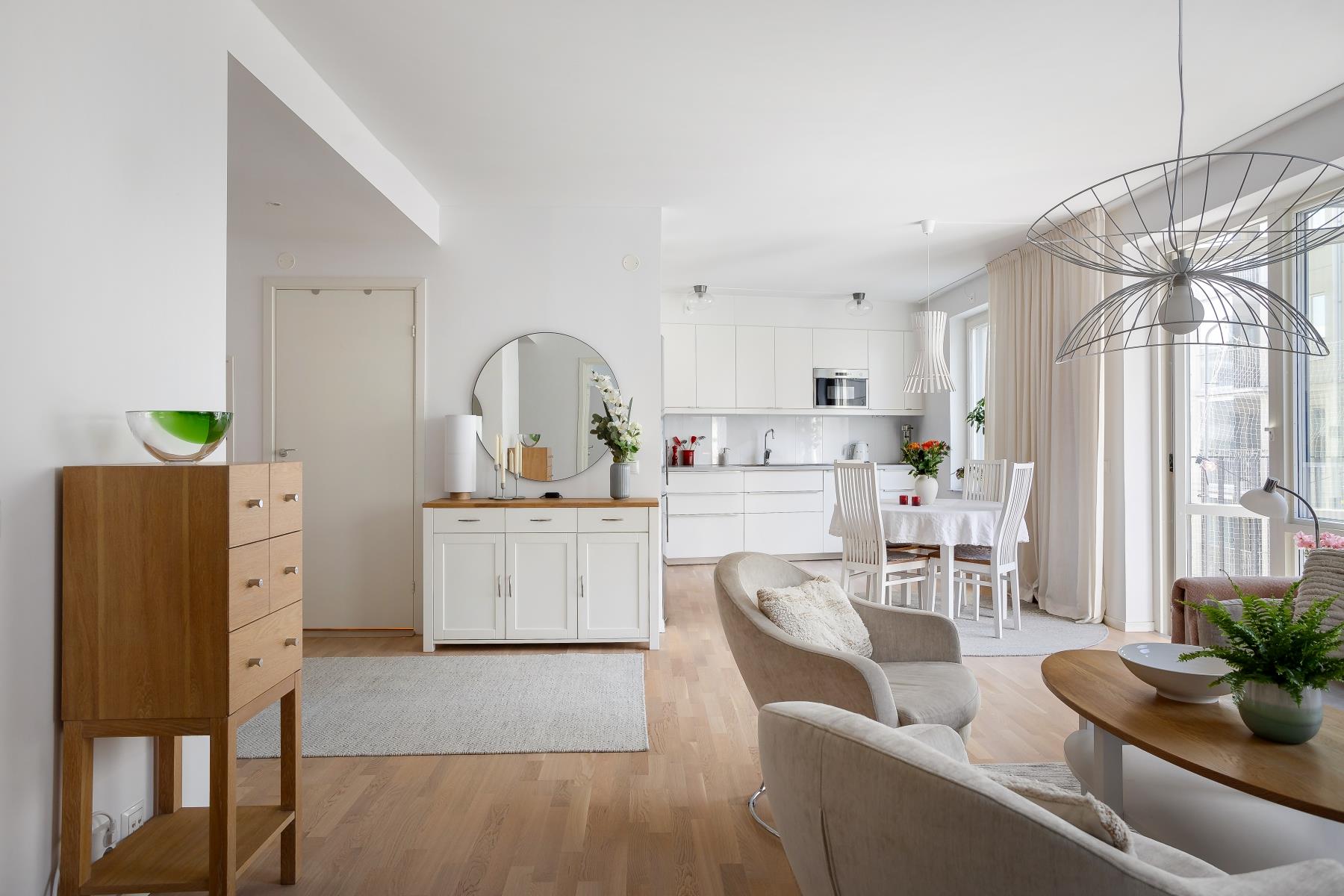 Varmt välkomna till denna unika genomgående trea om 78 kvm med terrass och balkong. Här erbjuds stilrent kök med smakfull design, helkaklat badrum med tvätt- och torkmöjligheter under praktisk arbetsbänk samt golvvärme. Vidare erbjuds en social och öppen planlösning, vackert ljusinsläpp, goda förvaringsmöjligheter, två rymliga sovrum med plats för önskad möblemang.