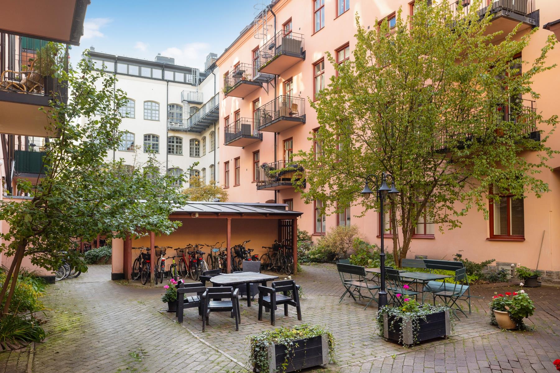- Föreningen erbjuder en lummig innergård med utemöbler, grill.