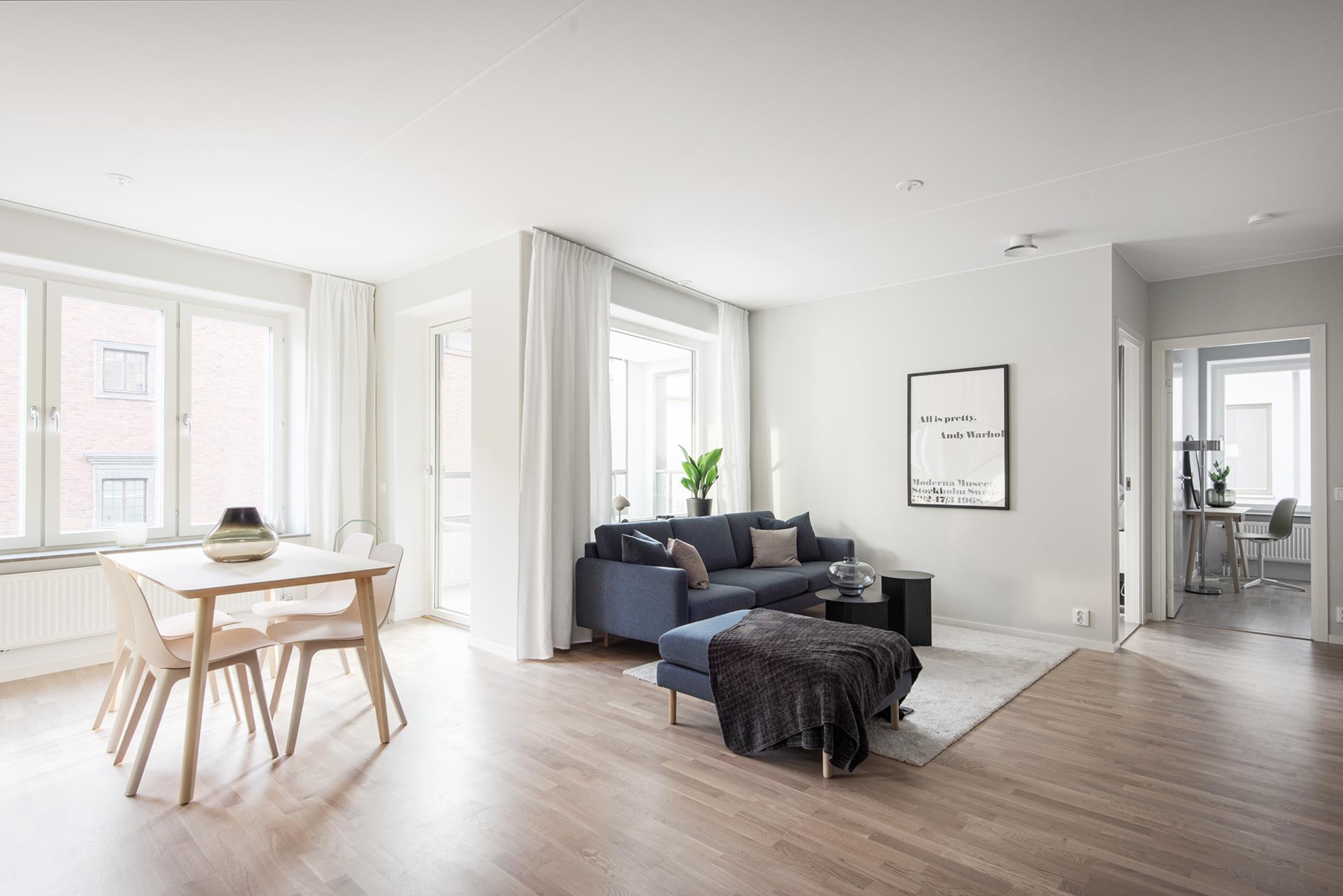 Fin och välplanerad samt välutrustad ägarlägenhet om 3 RoK med en underbar och rymlig balkong med vy över hela Hagastaden boulevard. Lägenheten har allt man kan önska sig i form av trevliga sällskapsytor, öppen planlösning, stilrena och påkostade materialval. Stora fönsterpartier som skapar ett härligt ljus i lägenheten. Här erbjuds två trevliga sovrum, stilfullt kök i öppen planlösning mot vardagsrum, snyggt helkaklat badrum med både tvättmaskin och torktumlare samt en välkomnande hall.